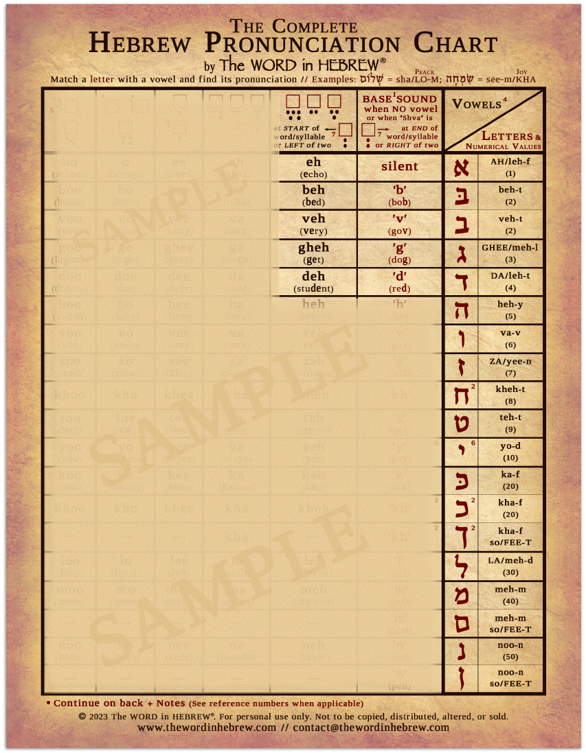 Learn Hebrew Pronunciation with the Complete Hebrew Pronunciation Chart by The WORD in HEBREW! A MUST have to any Hebrew student!