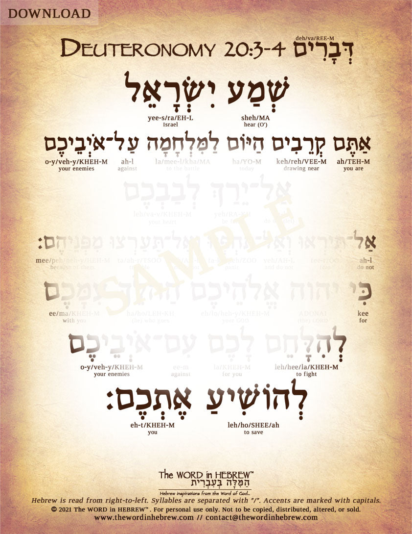 Deuteronomy 20:3-4 in Hebrew - Protection in Battle - Digital Download