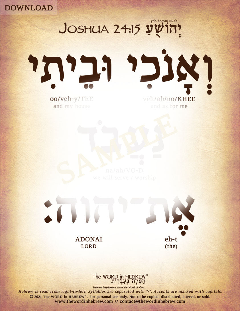 Joshua 24:15 in Hebrew - "As for me and my house..." - Digital Download