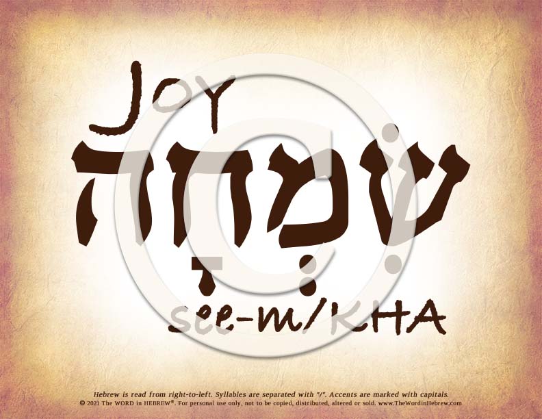 The Hebrew word for "Joy" with transliteration & translation in English, so you can learn how to say "Joy" in Hebrew. Perfect for Hebrew study and inspiration and will make a beautiful & blessed addition to any home or office.