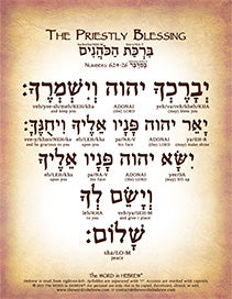 This poster features the biblical Hebrew text of the Priestly Blessing (also known as the "Aaronic Benediction") with each Hebrew word transliterated (broken into syllables) and translated into English. With minimal effort you will learn to pronounce each word in Hebrew and understand what it means within the context. Perfect for biblical Hebrew study and makes a beautiful & blessed addition to any home or office.