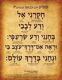 Psalm 139:23-24 in Hebrew - "Search me O' God..." - Print