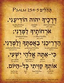 Psalm 25:4-5 in Hebrew - "Make me know your ways, O Lord..." - Print