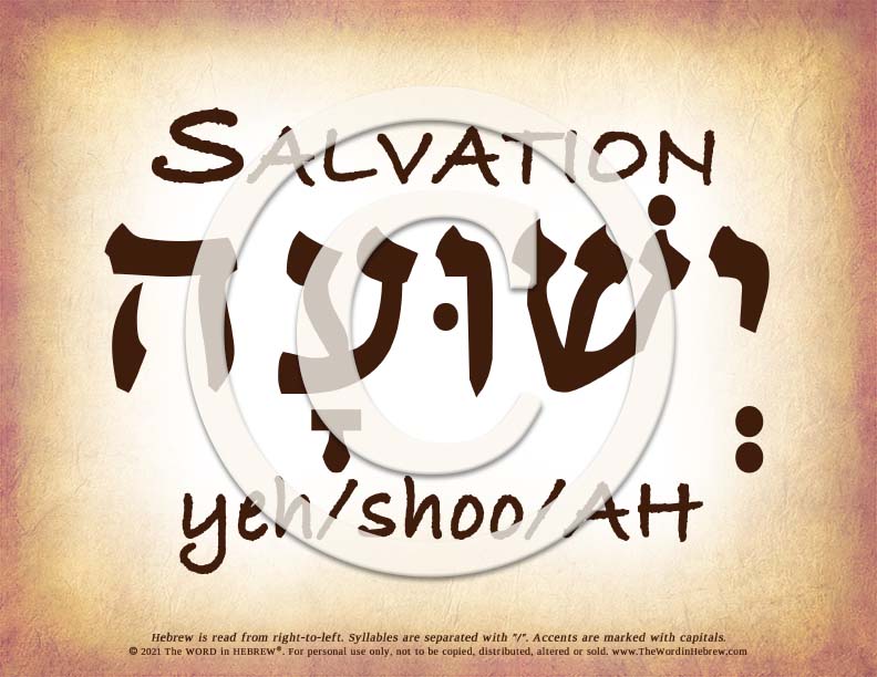 The Hebrew word for "Salvation" Yeshuah and with transliteration & translation in English, so you can learn how to say Salvation in Hebrew and understand the word in its biblical context. Perfect for Hebrew study and inspiration and will make a beautiful & blessed addition to any home or office.
