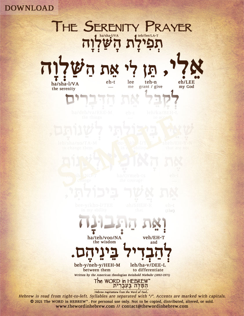 The Serenity Prayer in Hebrew - "My God, grant me the serenity to accept the things..." - Digital Download